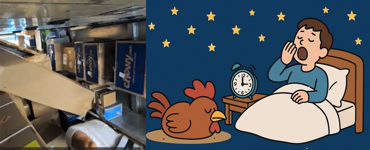 Waking up earlier than a rooster is bad for workers’ health. Staring at the assembly line looking for packages makes workers dizzy.